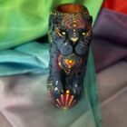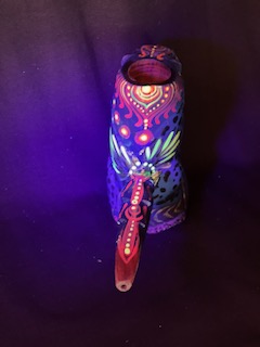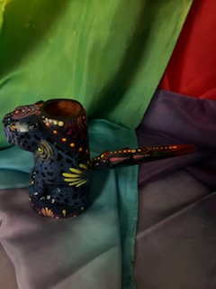 Otorongo (Jaguar) Pipe by Betson Macawashi, Hand Carved Palo Sangre Wood Tobacco Pipe for Shamanic Ceremony. Painted by Franz Joao Rengifo an ayahuasca visionary. Made in Pucallpa, Peru